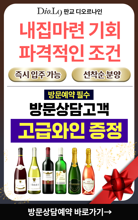 판교 디오르나인 방문예약 고객의 개인정보를 수집합니다. 수집한 개인정보는 방문예약 이외의 목적으로는 사용하지 않으며, 모집 기간 완료 후 즉시 파기합니다. 개인정보의 수집 및 이용에 대한 동의를 거부할 수 있으며, 이 경우 방문예약 접수가 어려울 수 있습니다.